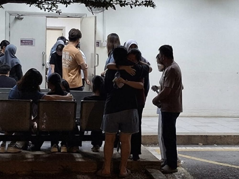 现场可见,同学们身着黑衣,排队依次进入殓房告别。有的当场泪流满面,也有人离开时情绪崩溃,悲痛氛围令人动容。不少同学抱头痛哭,难以接受同窗早逝,而来自不同族群的同学也前来表达哀悼。