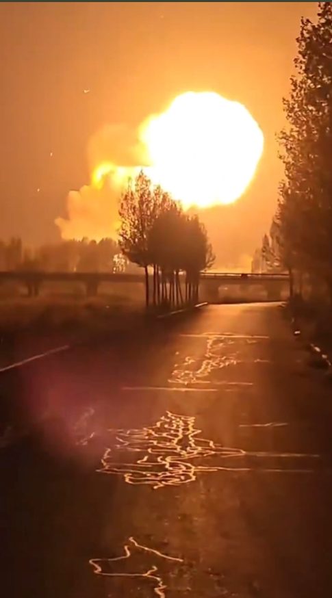 据中媒报道,爆炸发生在晚间8点40分左右。当地居民表示,当时听到巨响,并看到火舌冲天,因好奇前往现场查看,但在距离约1公里处,道路已被封锁。爆炸震动导致附近住户门窗玻璃破碎,甚至数公里外的人也能明显感受到震动。