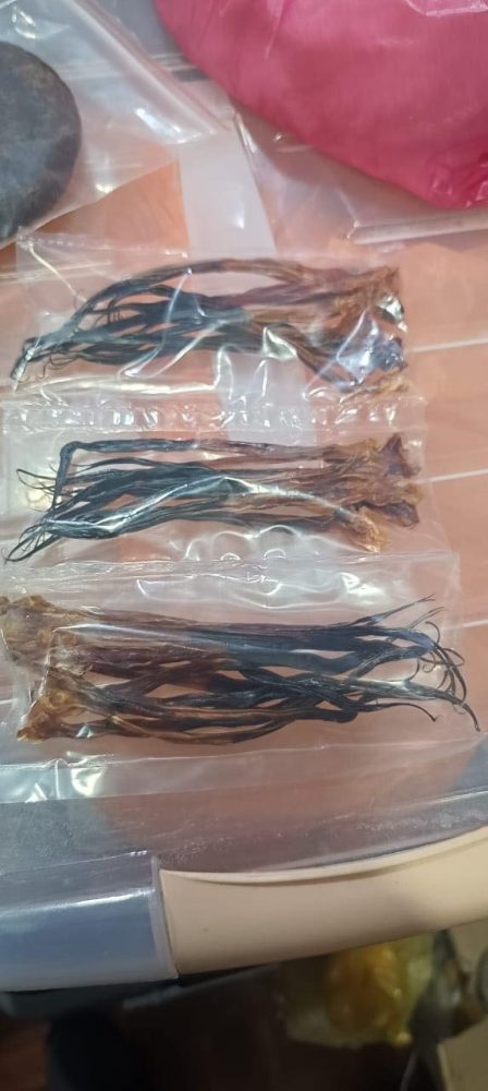 当局指出,现场起获的物品包括602颗蟒蛇胆、420颗熊胆,以及107块经压缩处理的老虎身体部位。执法人员也发现135块压缩后的灵长类动物部位,以及191根疑似蟒蛇生殖器官残骸。