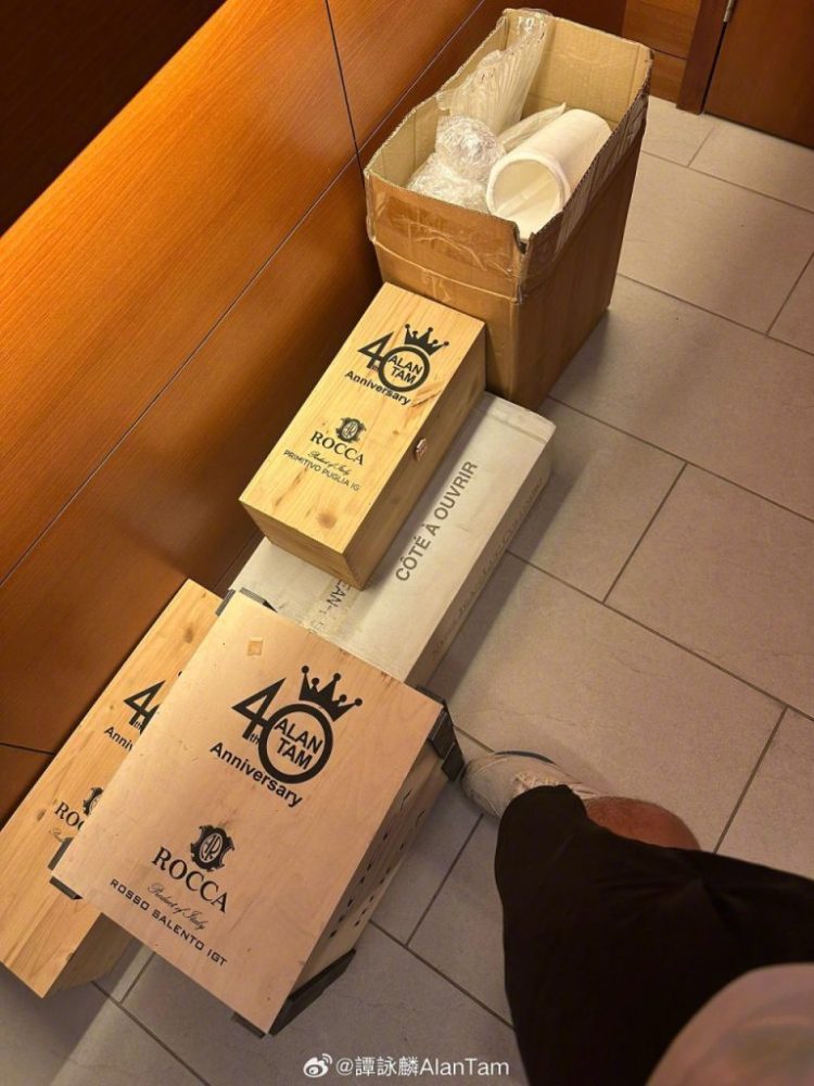 据了解,这批物品是为纪念他出道“银河岁月40周年”特别推出的珍藏红酒。谭咏麟表示,这些酒将亲自送到好友手中,全程由他参与处理,展现满满诚意。