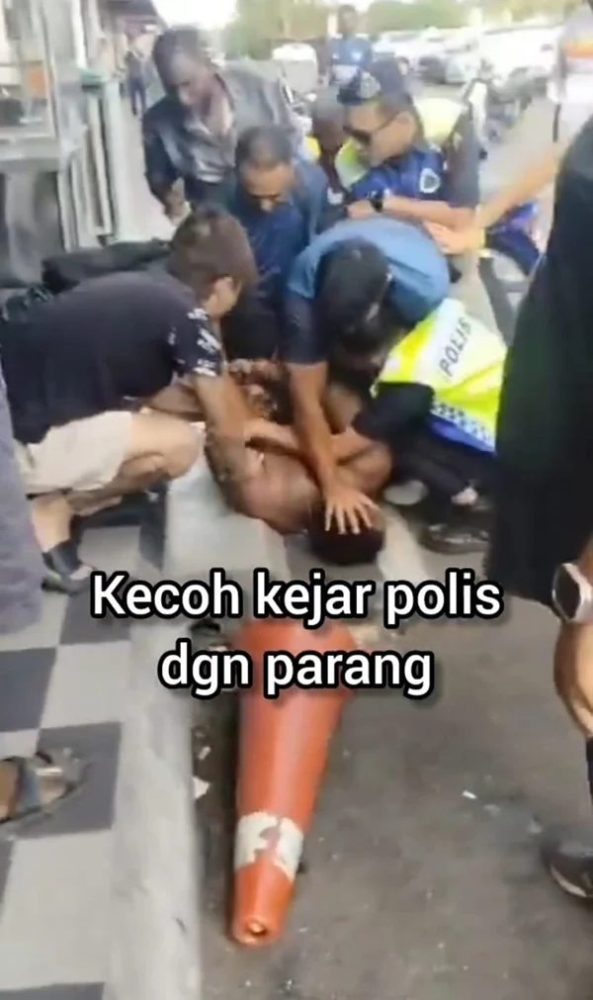 瓜拉冷岳直落孟光路于8日下午发生一起惊险骚乱事件,一名本地壮年男子疑似情绪失控,在街头持刀作出攻击性行为,还追逐执勤警员并破坏店铺与车辆,引发现场一度混乱,所幸在民众协助下,警方最终成功将嫌犯制服并逮捕。