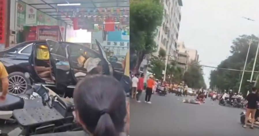 据多段网传视频显示,事发于周二(7日),儋州街头一辆黑色轿车失控行驶,过程中撞及多名路人,并一路驶入一间超市后才停止。现场可见多辆电动车倒地、杂物散落,一名疑似老年男子倒卧路面,情况不明。