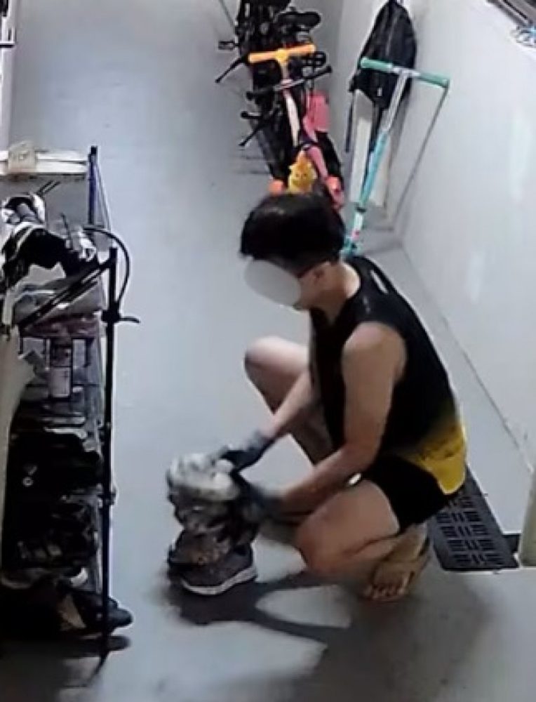 新加坡兀兰一座组屋区发生一起离奇盗窃案,一名男子被指清晨潜入走廊偷走住户门外的鞋子,随后竟将鞋子丢入垃圾槽,全程被闭路电视拍下。