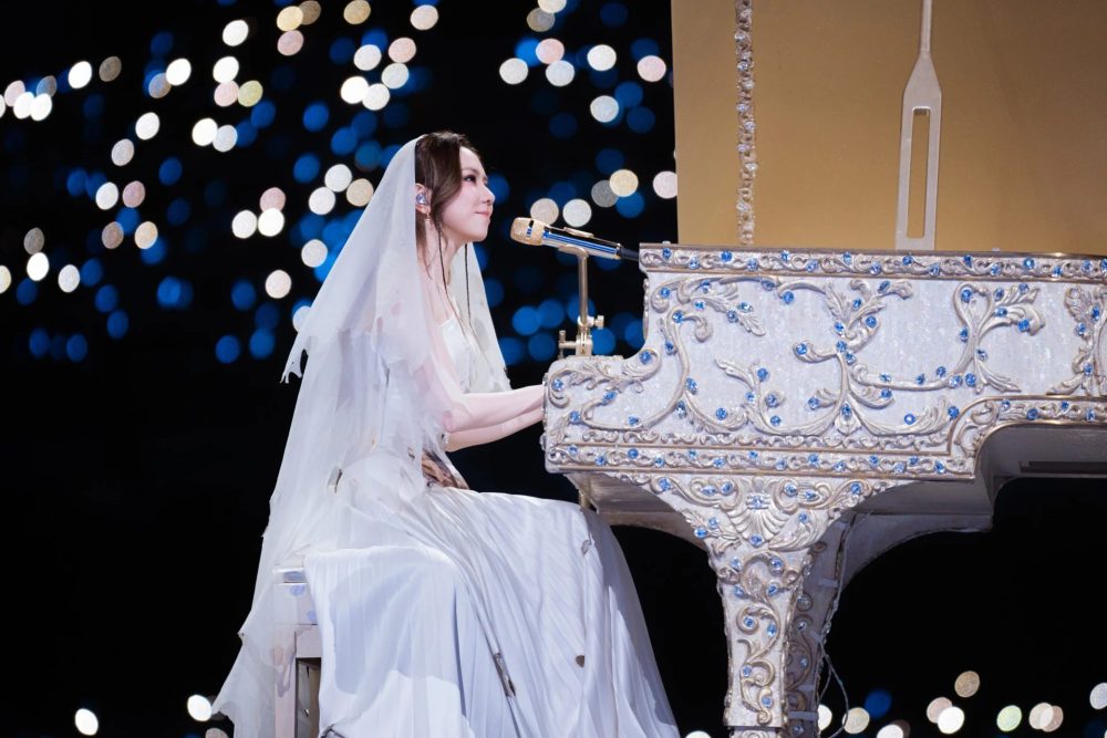 在安可环节,她提到19岁创作《泡沫》的心境,坦言当年认为爱情脆弱,如今却有不同体会。她也鼓励歌迷,无论面对何种困难,只要心中有爱,就能继续前行。