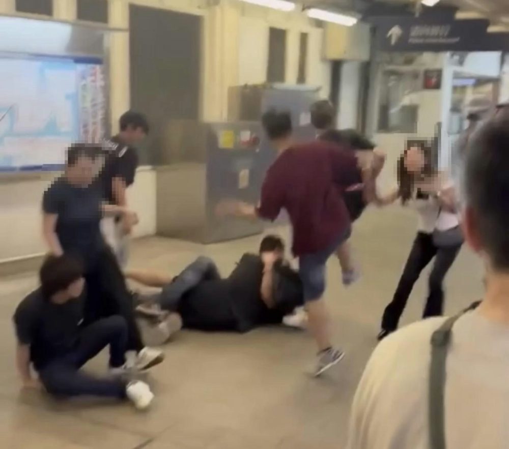 网上流传的片段显示,现场至少有6名男子在站内扭打一团,场面相当混乱。其中两名男子更一度纠缠倒地,其中一人压在对方身上不断挥拳,还曾用手肘压住对方颈部,其他人则在旁拉扯、起脚,现场不时传出粗口叫骂声。