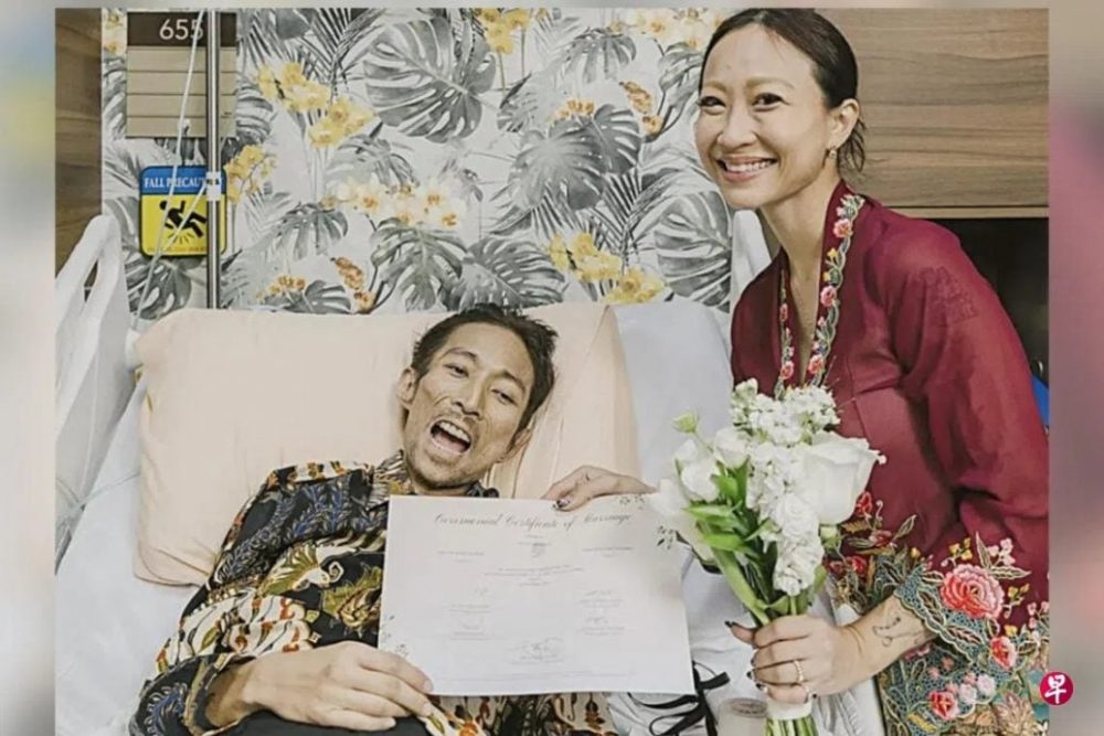 在亲友及院方协助下,两人于本月7日早上紧急联系新加坡婚姻注册局。巧合的是,找到一名与丈夫同名的宣誓官主持仪式,病房内在众人见证下签署结婚证书,正式成为夫妻。