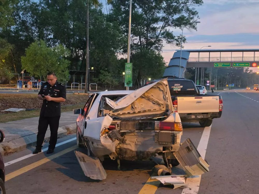 根据初步调查,一名27岁本地男子驾驶国产赛佳轿车,从实邦加往市区方向行驶,在交通灯处进行U转后驶入中间车道。不久后,一辆直行而来的摩多疑因来不及反应,直接撞上轿车尾部。