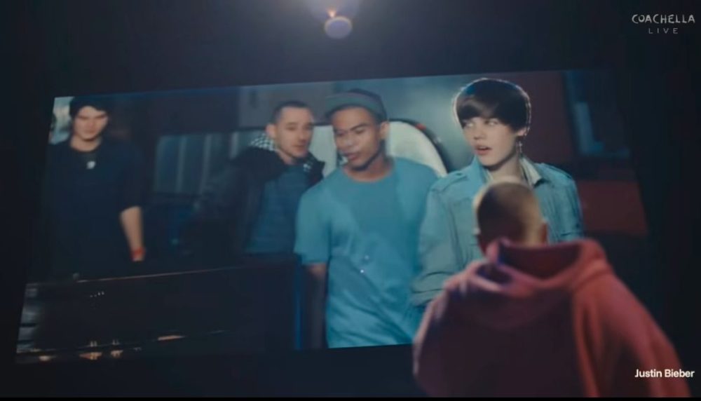 演出中段,他突然走向舞台上的笔记本电脑,表示“是时候带大家回到过去的旅程”,随后在YouTube搜索《Baby》。当熟悉前奏响起,全场瞬间沸腾,他一边播放MV,一边与画面中的自己隔空合唱,完成跨时代同框演出,掀起热烈讨论。