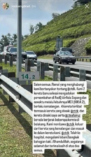 根据其经纪人罗兹透露,事发于当天下午,地点位于大道第14.2公里处。当时西蒂诺哈丽查刚在雪邦完成演出,与团队分乘两辆车离开,不料途中发生意外,情况一度令人担忧。