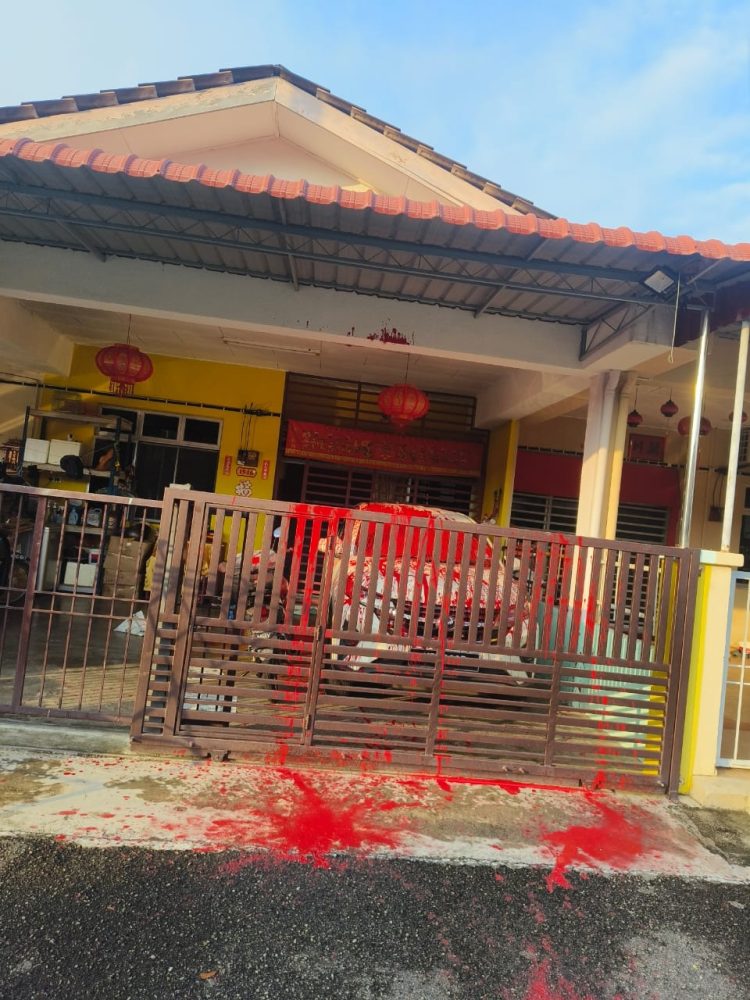 一起疑似“泼红漆恐吓”事件在淡边英达花园发生,一家六口在毫无债务或纠纷情况下,凌晨遭人恶意破坏住家与车辆,损失估计超过5000令吉,令全家人陷入恐慌与不安。