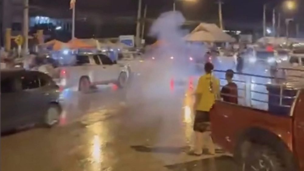 泰国宋干节尾声传出街头骚乱,碧差汶府威猜汶里县一场泼水活动附近爆发青年群殴,不仅有人互殴、投掷瓶子,还有人丢掷俗称“乒乓炸弹”的土制爆炸物,现场一度传出“有人开枪”的叫喊声,吓得原本前来玩水的游客四处奔逃,场面混乱。事件地点就在2012号公路、靠近威猜汶里警局一带。