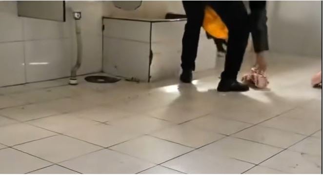 据网传视频显示,一名身穿围裙的男子将多块冷冻猪肉放入公厕内水池中清洗,期间一名女子在旁疑似进行指导。涉事水池被指为公厕内用于清洁拖把的设施,旁边甚至紧邻尿斗区域,卫生状况引发外界质疑。