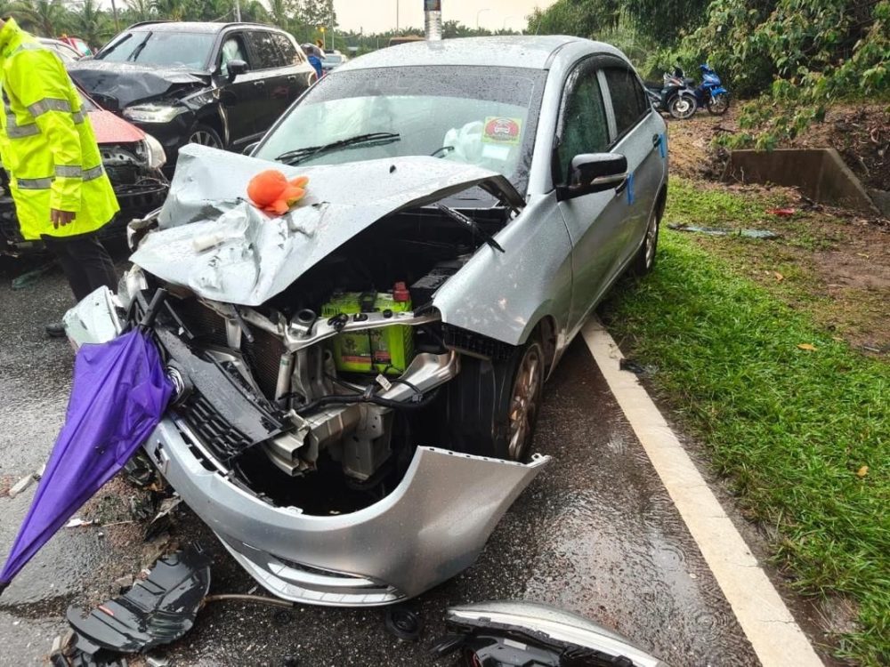 根据警方初步掌握,一辆载有4人的轿车当时从居銮朝亚依淡方向行驶,途经事发路段时,相信因下雨导致路面湿滑,车辆突然失控,越过分界进入反方向车道,随后撞上迎面而来的另一辆轿车,以及一辆多功能休旅车。