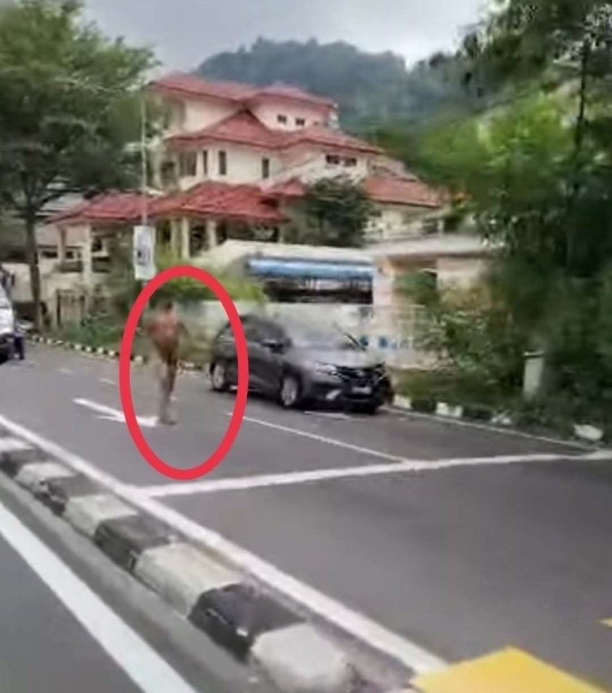 槟岛武吉占姆一带日前出现惊险一幕,一名本地男子全身赤裸在路中央游荡,因行为异常引发公众关注,警方接获投报后赶往现场,并在救护人员协助下将他制伏,随后送院接受精神评估与治疗。