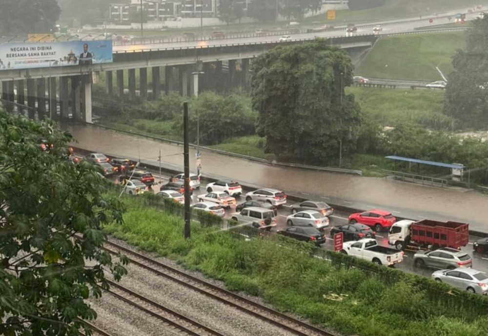吉隆坡第二中环公路(MRR2)因午后暴雨引发大规模积水,多处路段被淹没,交通受到严重影响。