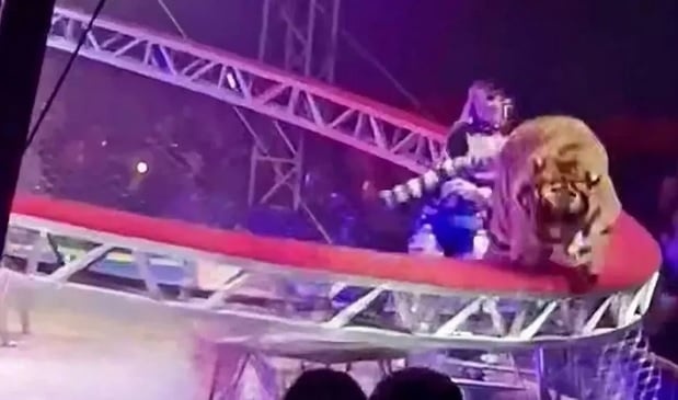 外媒报道,这起事故发生于本月19日下午约3时,地点位于俄罗斯顿河畔罗斯托夫一处马戏团帐篷内。当时场内正进行老虎表演,岂料原本围绕表演圈的防护网突然掉下,打乱现场秩序。