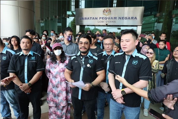 大马国际人道主义组织(MHO)总秘书拿督希山慕丁与华裔社会公关代表胡杰良今早11时,陪同约100名投资者前往律政署(前称总检察署)提交上诉信,要求律政署介入案件,并对两名涉案人士提控。