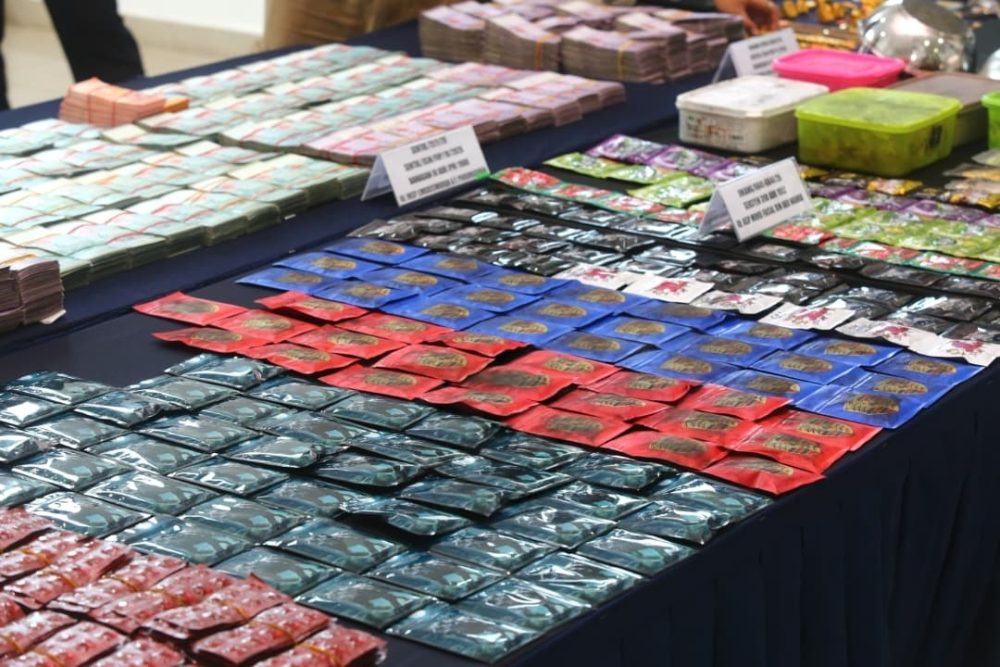此外,行动中共逮捕20人,在检查855人时发现13人涉及吸毒。执法人员同时起获大量相关物品,包括8091个电子烟装置、5257个烟弹、18.55公斤芬太尼、12克大麻、660克摇头丸、450克哥冬水,以及186.54公斤未掺毒电子烟油,总值约460万令吉。