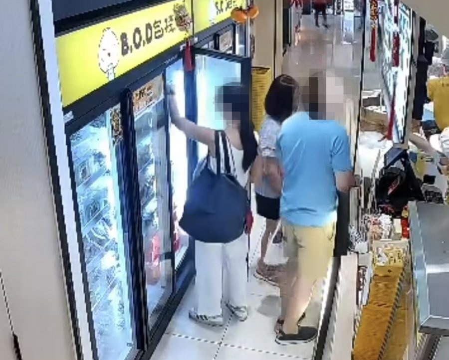 从店方公开的画面来看,当时柜台人员正在接待其他顾客,一名女子则走向一旁冰柜挑选商品。片段显示,她先后拿起两盒食物查看,随后疑把其中一盒放入随身手提包内,另一盒则重新放回冰柜,之后离开现场。
