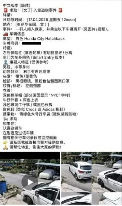 日前涉及入屋爆窃案件遭警方通缉的两名蒙面男子,其使用的一辆白色本田City Hatchback轿车,早前曾因疑似“蹭”过路费行为在社交媒体上引发关注,如今更被指与失窃车辆有关。