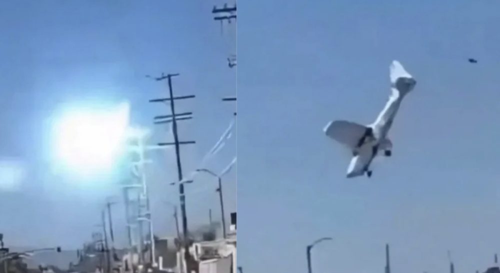 根据外媒报道,网上流传的行车记录仪视频拍到,飞机飞越一条繁忙道路上空时,突然碰到一组高压电线,瞬间爆出强烈火光。其后机体迅速失控下坠,朝附近停车场方向俯冲。