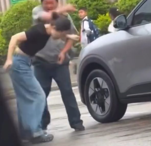 女子随后情绪失控,下车踢向保安小腿,保安则当场反击,挥手掌掴对方。