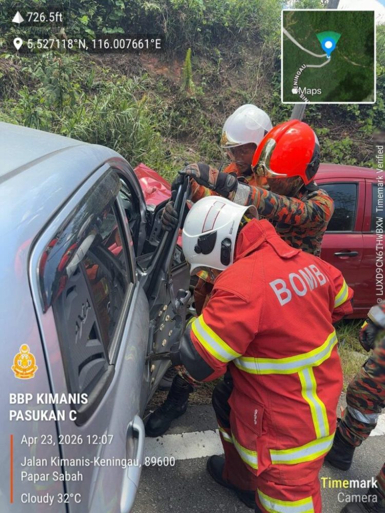 根据《诗华日报》报道,事故地点位于距离金马利镇约25公里的Jalan Bukit Kimanis–Keningau路段,事发时两车在拐弯处发生猛烈碰撞,现场情况一度混乱。