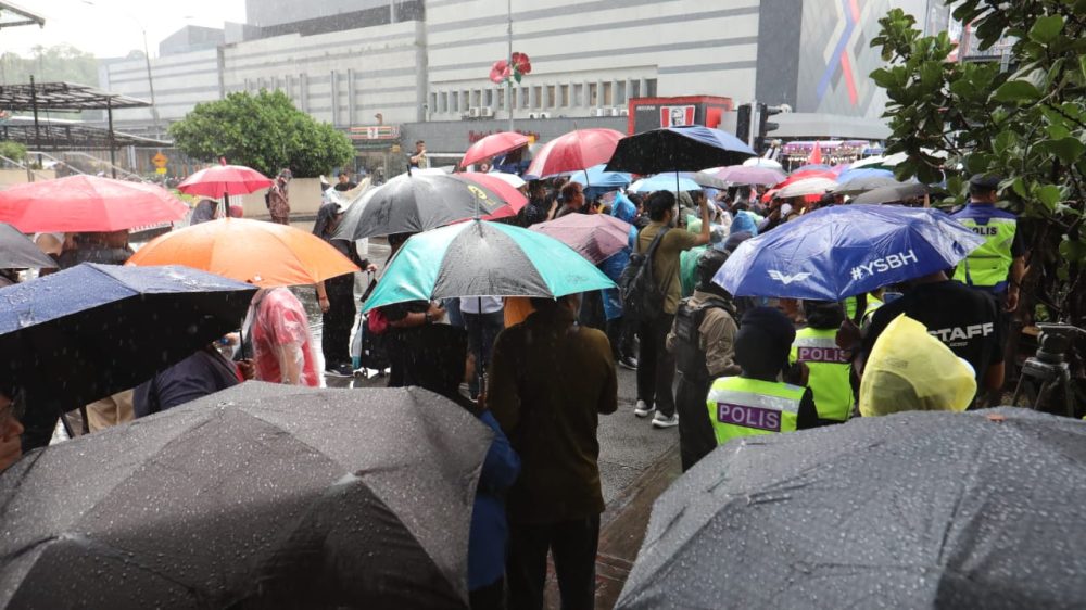 “逮捕阿占峇基”集会活动举行时,尽管风雨交加,超过百名集会者依然按计划参加活动。