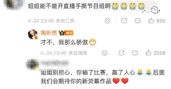 面对争议,有粉丝呼吁陶昕然公开表达不满,但她选择以简短回应拒绝,强调不会采取对抗方式,态度也获得部分网民肯定。