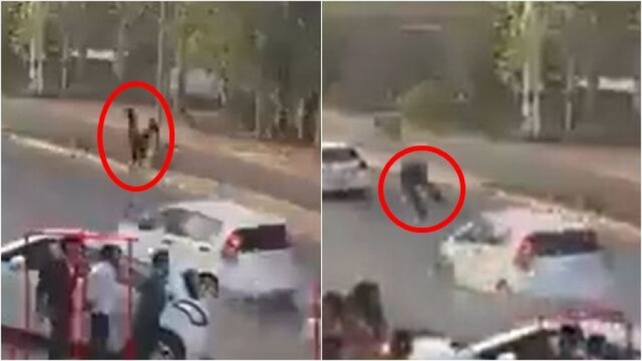 画面显示,轿车高速驶来后撞上摄影师,强大冲击力把他抛飞至约25公尺外,随后重重跌落在马路上。现场宾客目睹事故后立即上前查看,并报警求助。