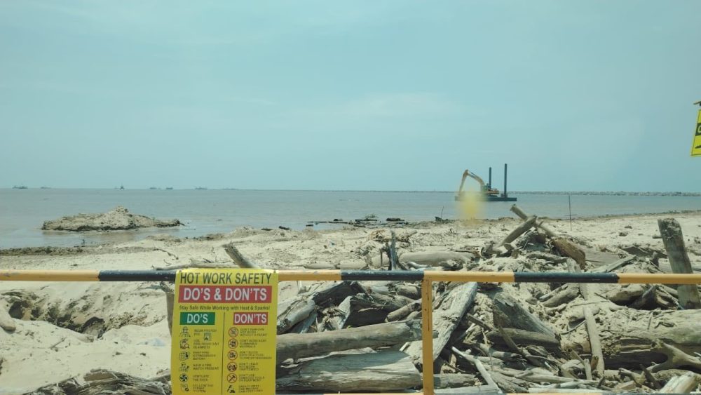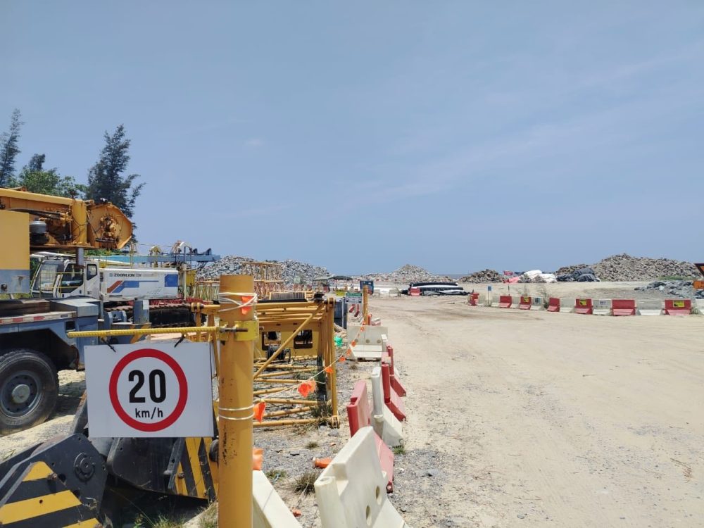 该项目为航道疏浚与防波堤工程,总投资约2亿令吉,施工范围涵盖河口及近海水域,预计将在2026年底完工。工程包括加深入口航道、建设总长约6公里的防波堤,并将水深提升至可容纳大型船只通行的水平,以改善整体航运条件。