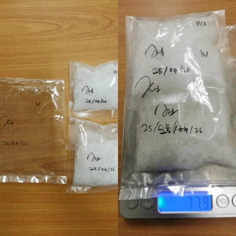 行动中,警方在现场起获约77.9克疑似冰毒,市值约8000令吉,并当场拘捕一名39岁本地男子及一名外籍人士。