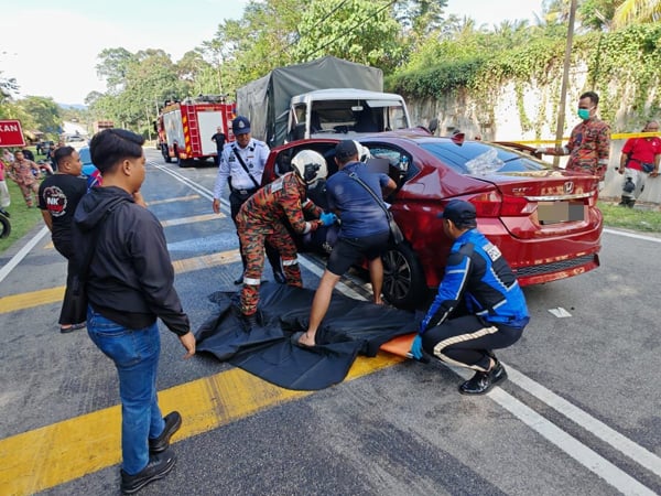马六甲亚罗牙也乌丹必佳路昨日下午发生一起严重交通意外,一辆载有4人的本田City轿车疑似失控闯入反方向车道,与迎面驶来的罗里发生猛烈碰撞,造成3名男子死亡、1名女子受伤。