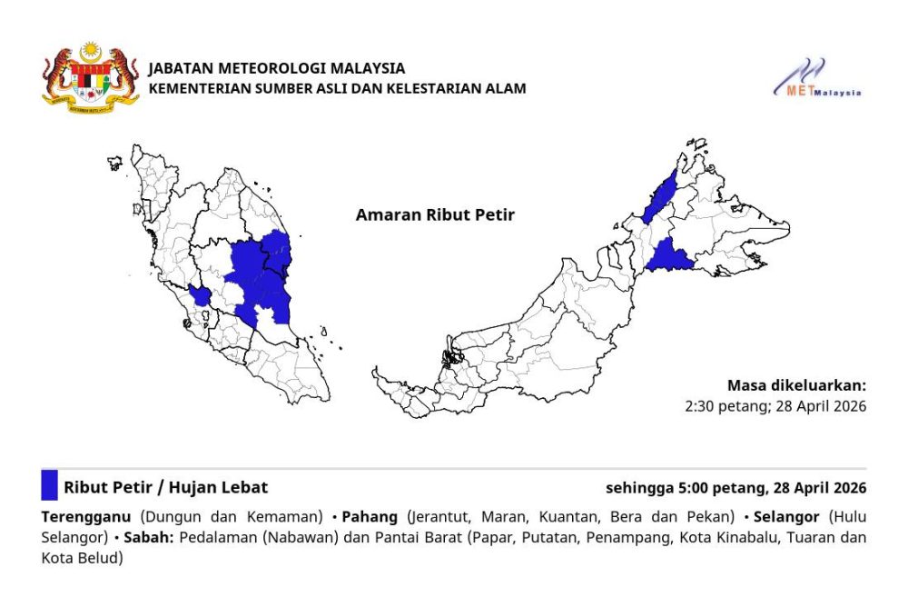 上述地区预计将持续受恶劣天气影响,直至2026年4月28日(星期二)下午5时。