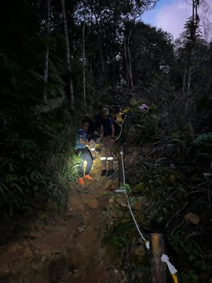 据了解,伤者为一名37岁的伊班籍男子,登山途中疑因体力透支,突然出现气喘症状,无法继续行程,被迫停留在距离山脚约500米的坡道上。