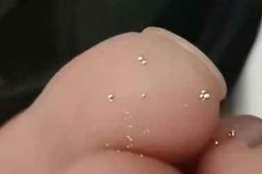 从她提供的照片可见,饮料中出现多颗银色颗粒。王女士认为,这些物质外观看起来像金属,质地冰凉且坚硬,因此怀疑可能是水银。