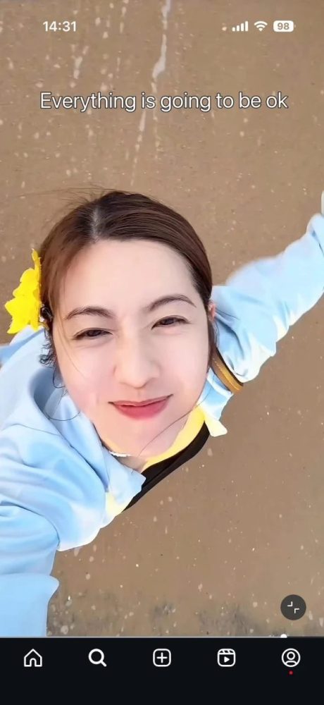 近日她在海边拍摄并上传一段短片,配文简单轻松。画面中她以淡妆上镜,将头发束起并点缀花饰,造型清新自然,整体穿搭以黑色背心搭配浅色外套,风格轻便,贴合海滩氛围。