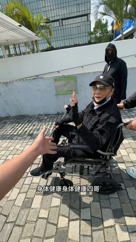 据悉,他并非完全无法行走,而是因年事已高,腿部力量下降,不适合长时间步行,因此外出多以轮椅代步。当天所使用的为电动轮椅,可自行操作,出行相对方便安全。