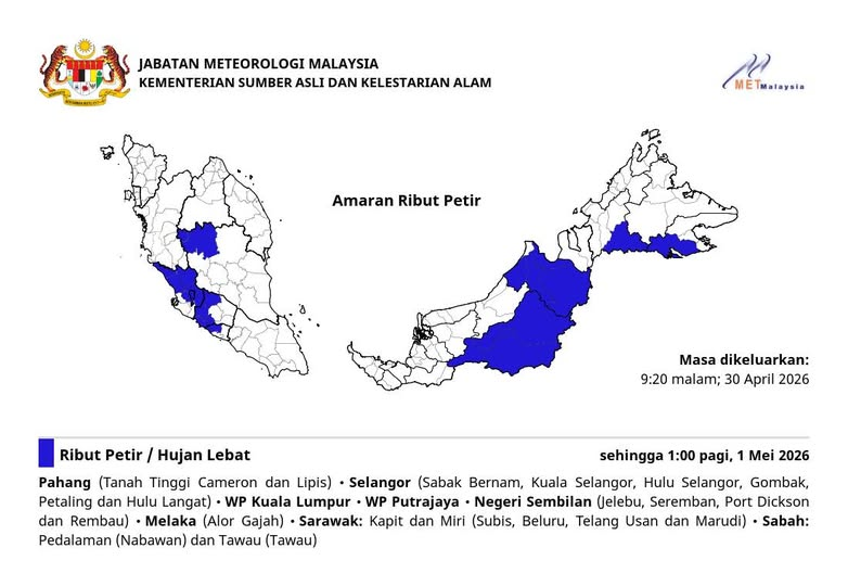 东马方面,砂拉越加帛及美里多个地区(如苏必士、柏鲁鲁、德朗乌山及马鲁帝),以及沙巴内陆纳巴湾与斗湖也在警报范围内。