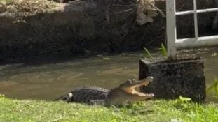 林梦鳄鱼数量激增,如今不仅出现在河岸晒太阳,连住家排水沟也成了它们的新栖息地!