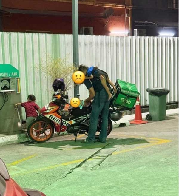 根据Instagram账号@jentikhati的贴文,一名名叫蒂拉的女子日前在加油时,目睹一名男子骑着摩哆停在油站的充气站,不是为了打气,而是为三名小孩——其中一人还在襁褓中——轮流更换纸尿片。这一幕让她震撼又心疼。