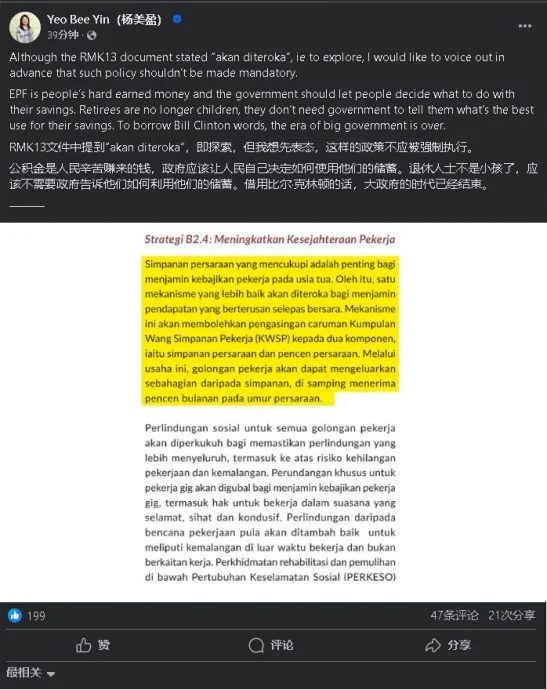 这则帖文迅速引发网友共鸣,纷纷留言力挺。有者认为,退休金是个人私产,人民有权自由支配;也有者呼吁政府提供选项,而不是以“一刀切”的方式强制实施。